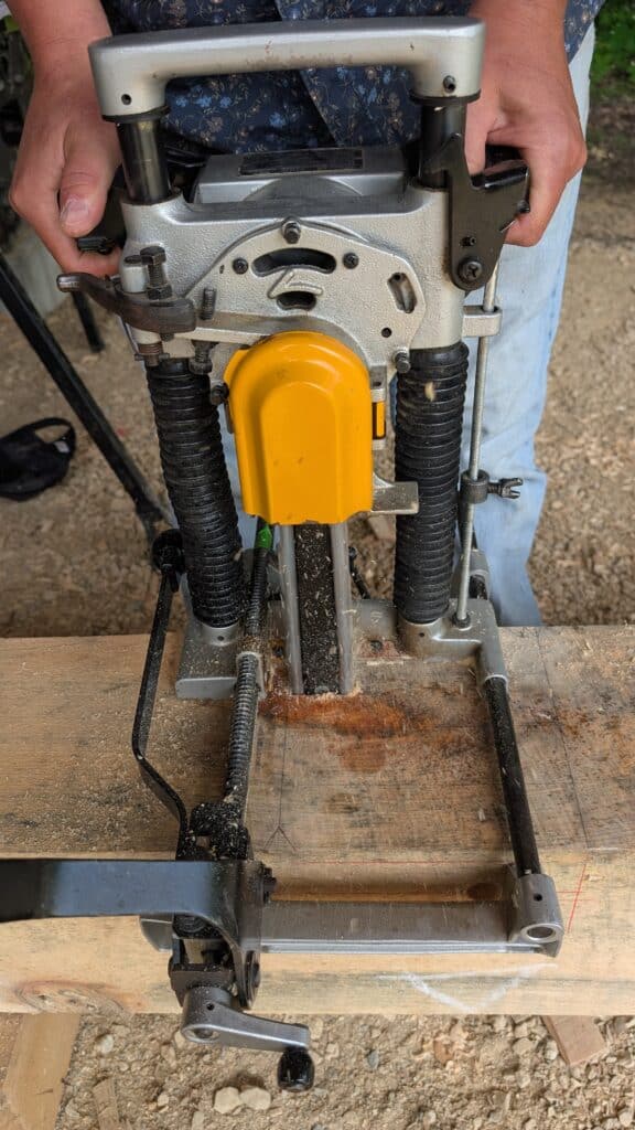 for many people getting serious about timber framing, this is the chain mortiser they end up with.